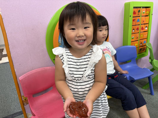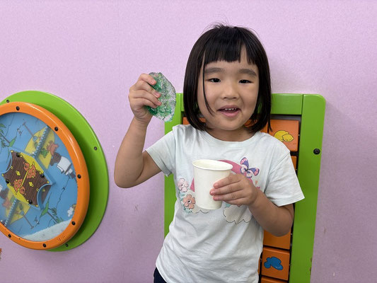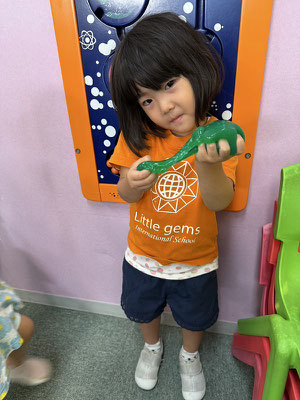 K-classとT-classはスライムを作りました!この感触、子供たちは大好きですね!!