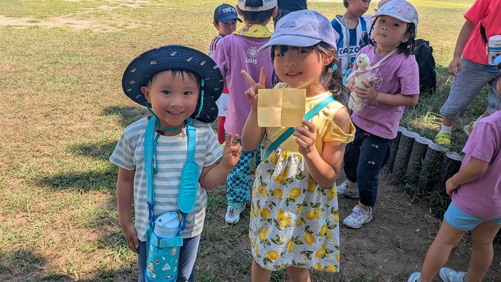 午前中の開催でもそれでも暑かったTreasure huntingでしたが、みんな無事に保護者の皆様の前にお帰しする事ができてほっとしています。今年は本当に暑くてParkにいけずに室内でGame timeが多かったですが、Treasure huntingを外で開催できて良かったです。