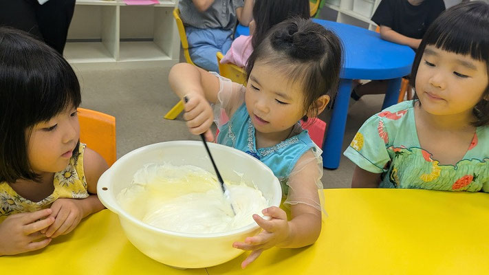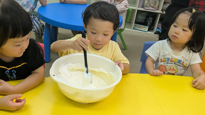 今回はなかなか混ぜにくいのでみんな苦労してしました。