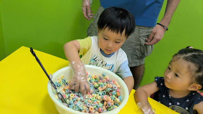 二つを混ぜた後は、「Froot loops」を加えて更に混ぜていきます。