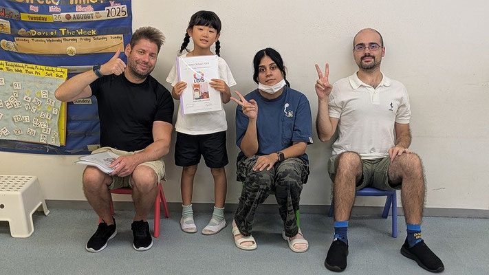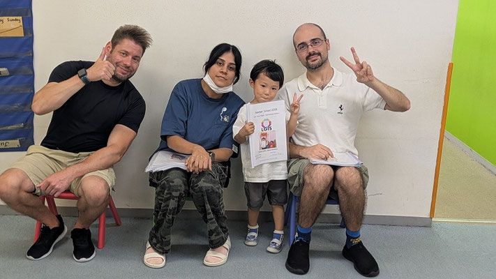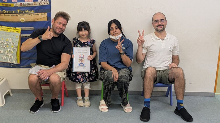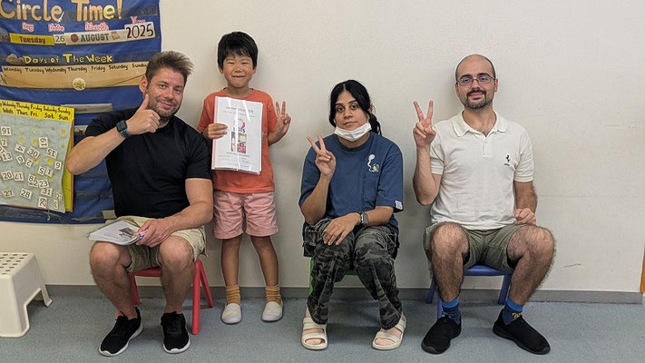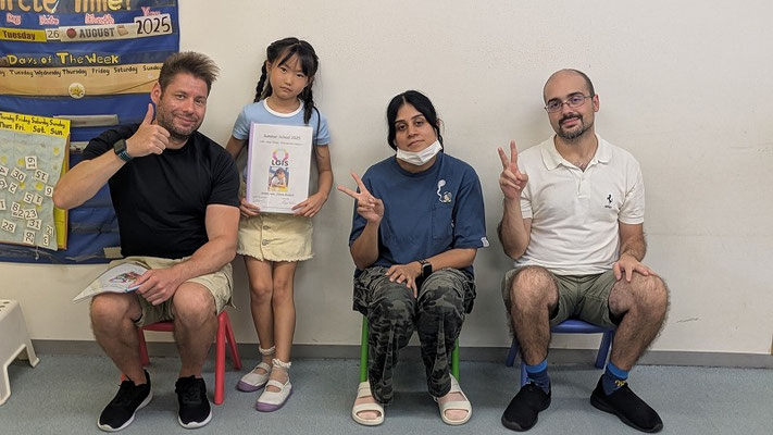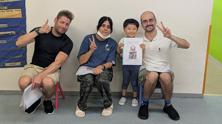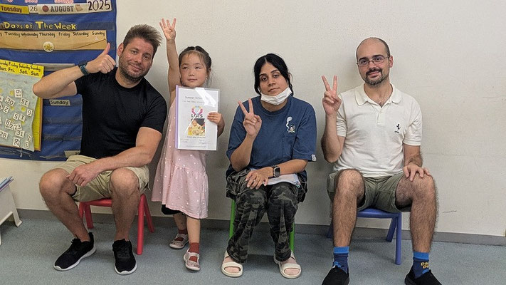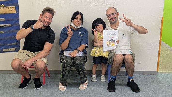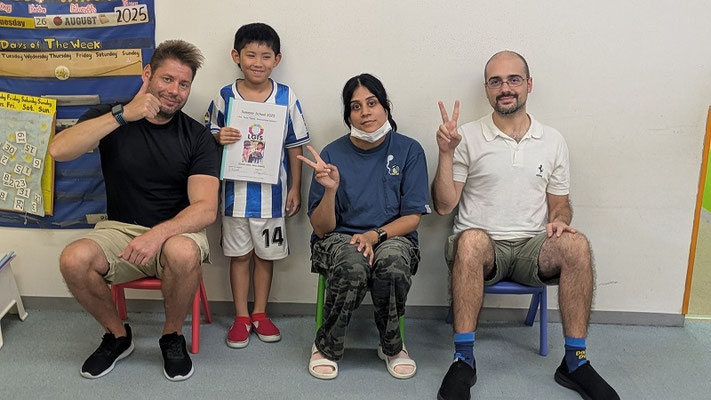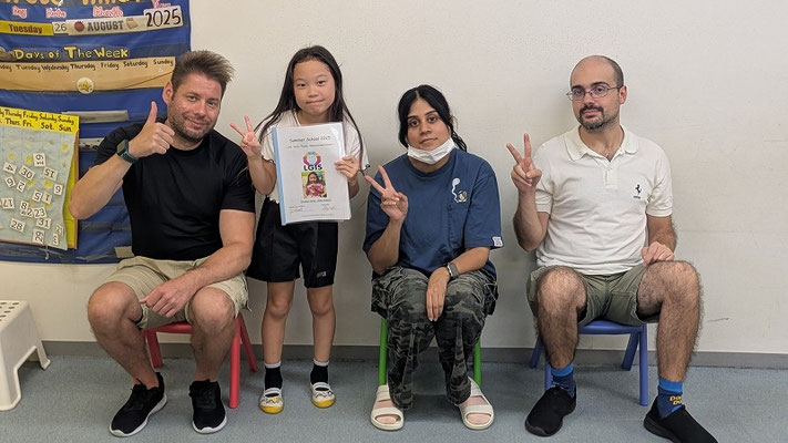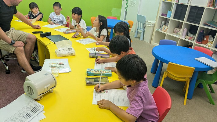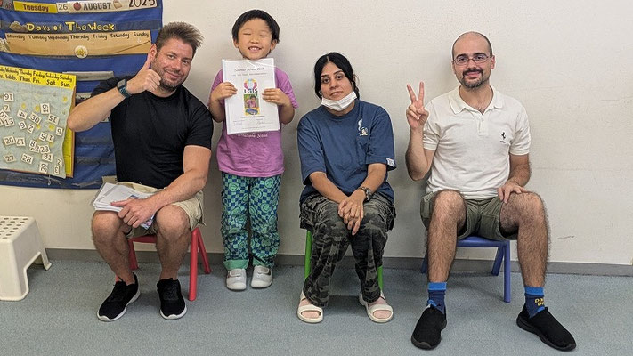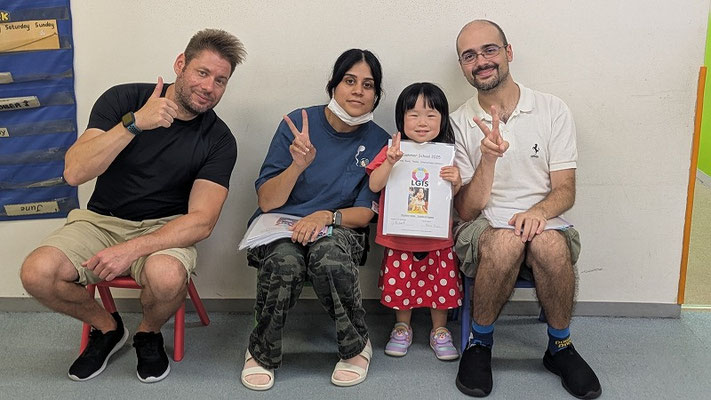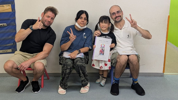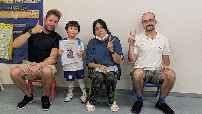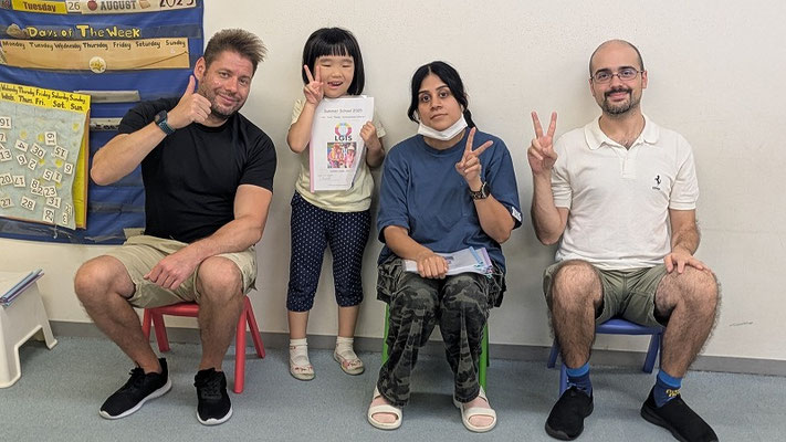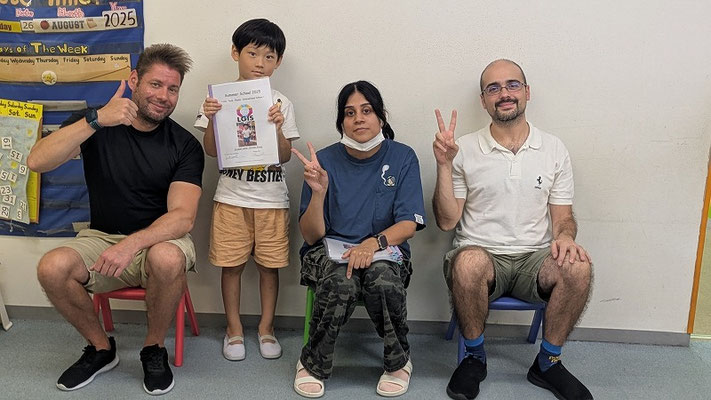 最終日の午前はテキストの総仕上げ、Summer Schoolの振り返りを行いました!子供たちにSummer Schoolで一番好きだったレッスンとイベントを選んでもらいましたが、CookingやWaterfightingが特に人気がありました!午後は「Pass the Pass」というゲームを行ったあとに修了式。最後は全員で記念写真を撮りました!ほぼ毎日のように熱中症警戒アラートが出ていたため、ほとんどParkにいく事ができずに、その分屋内でのGame timeが多くなりましたが、みんな楽しそうに参加してくれていて良かったです。リトルジェムスは9月4日から新学期がスタートします!